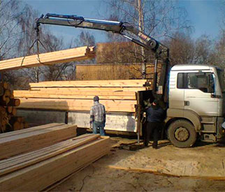 С завозом на участок и сборка. Разгрузка клееного бруса в пачках по 3-5 тонн и длинной до 9-12 метров.